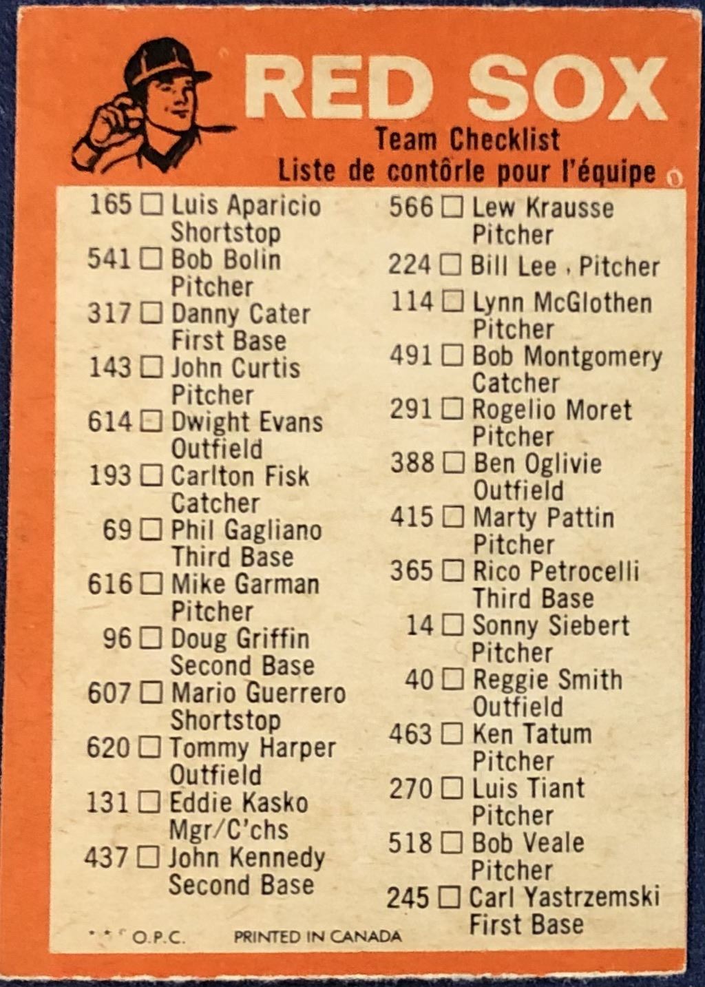 Lot 1007 1973 O-PEE-CHEE BOSTON RED SOX