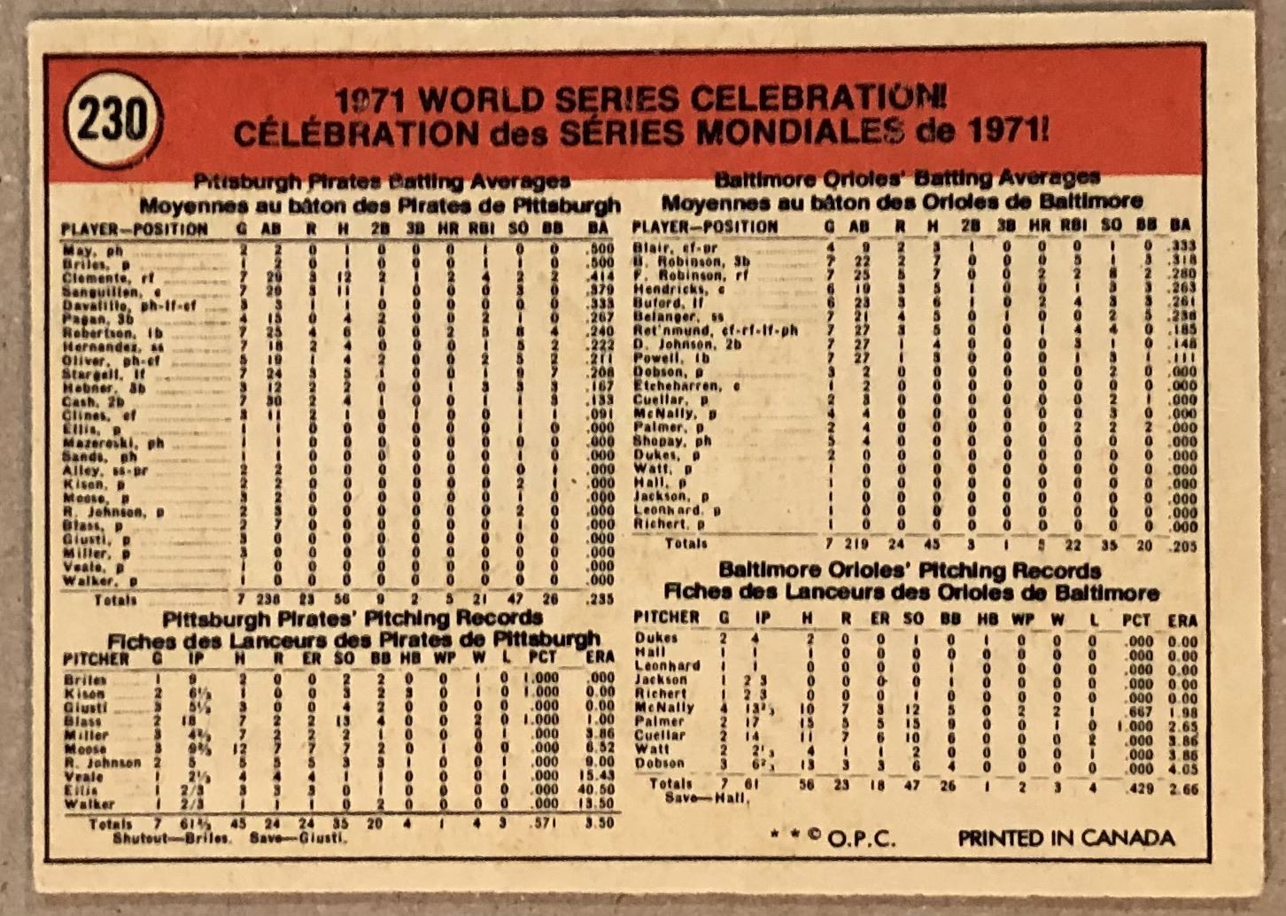 Lot 1023 1972 O-PEE-CHEE PIRATES WORLD CHAMPIONS