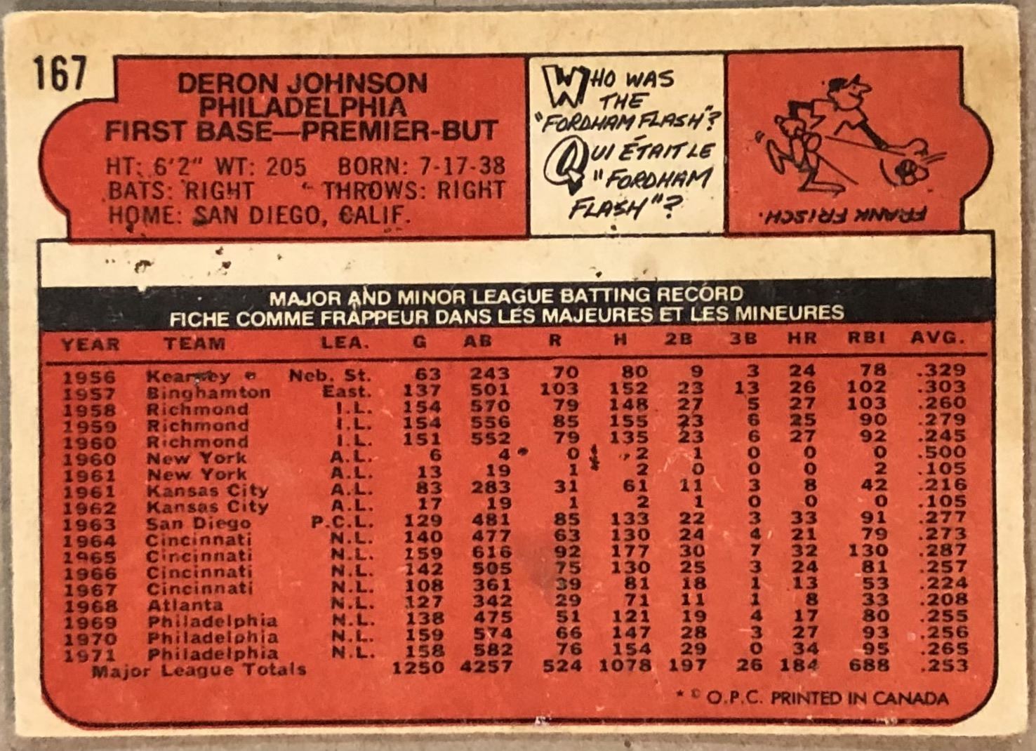 Lot 1034 1972 O-PEE-CHEE DERON JOHNSON