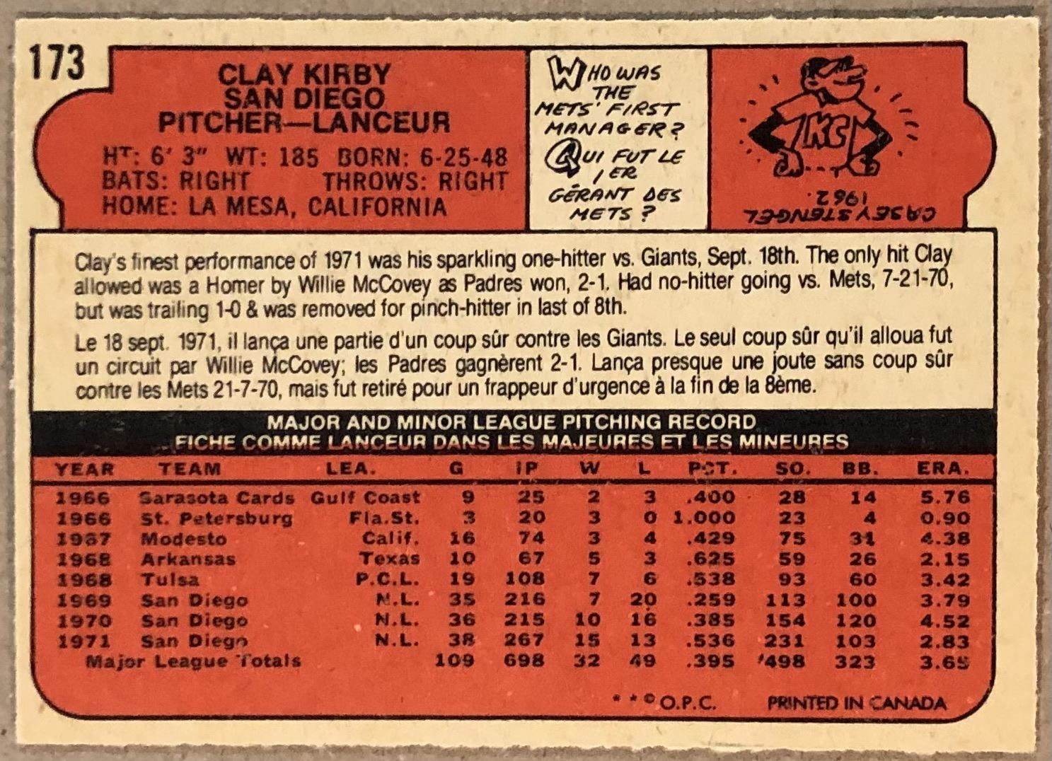 Lot 1039 1972 O-PEE-CHEE CLAY KIRBY