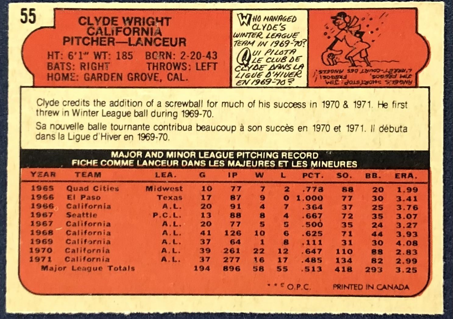 Lot 1050 1972 O-PEE-CHEE BASEBALL CLYDE WRIGHT