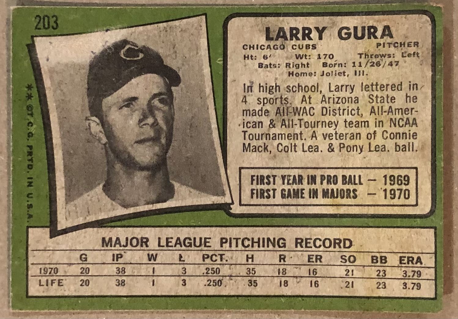 Lot 1056 1971 TOPPS LARRY GURA ROOKIE CARD