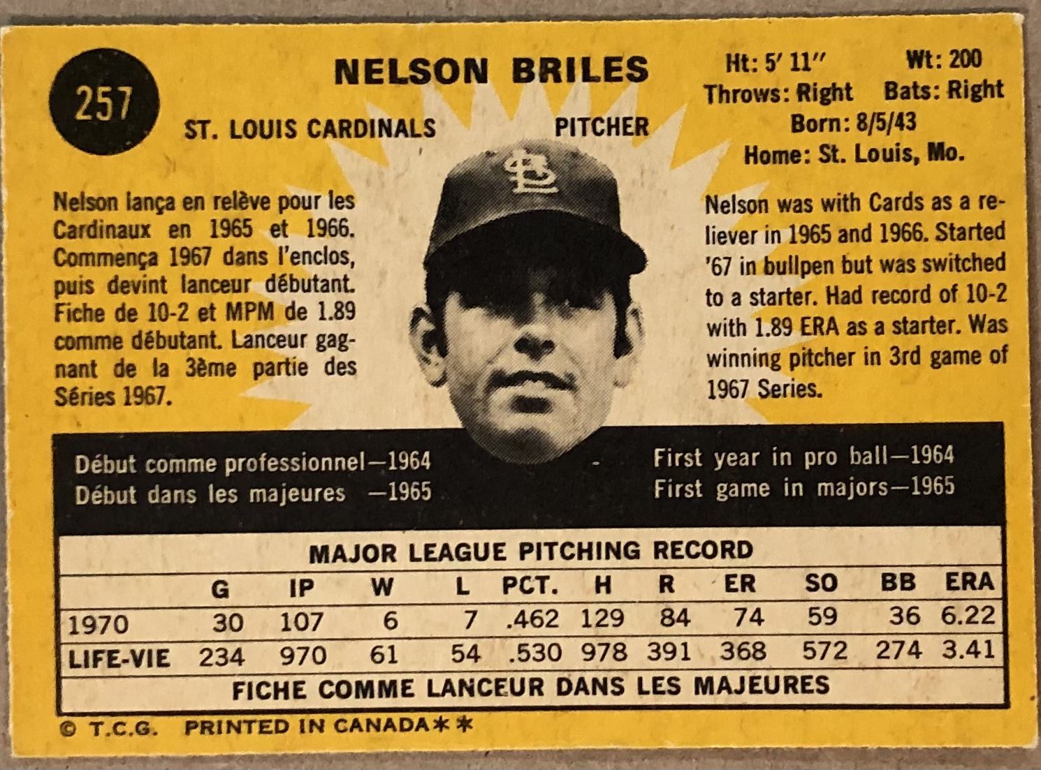 Lot 1061 1971 O-PEE-CHEE NELSON BRILES