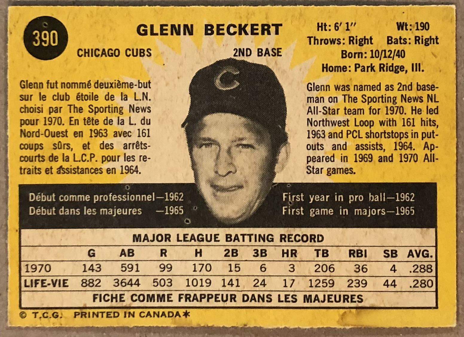 Lot 1070 1971 O-PEE-CHEE GLENN BECKERT