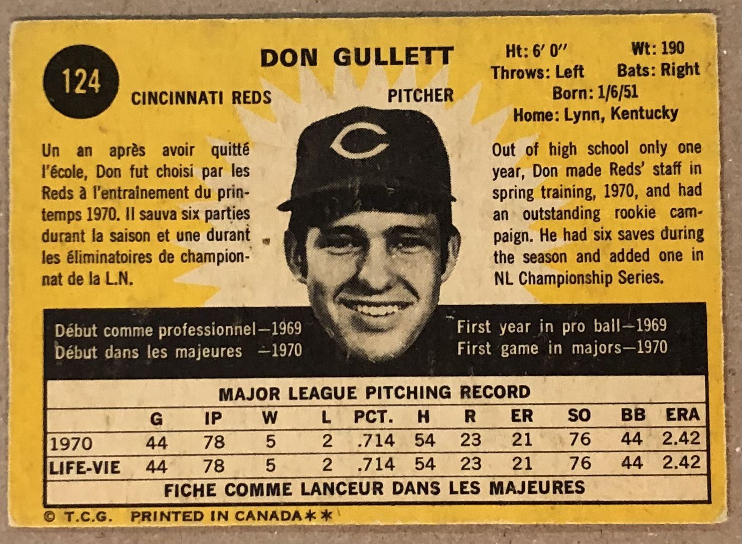 Lot 1073 1971 O-PEE-CHEE DON GULLETT ROOKIE CARD