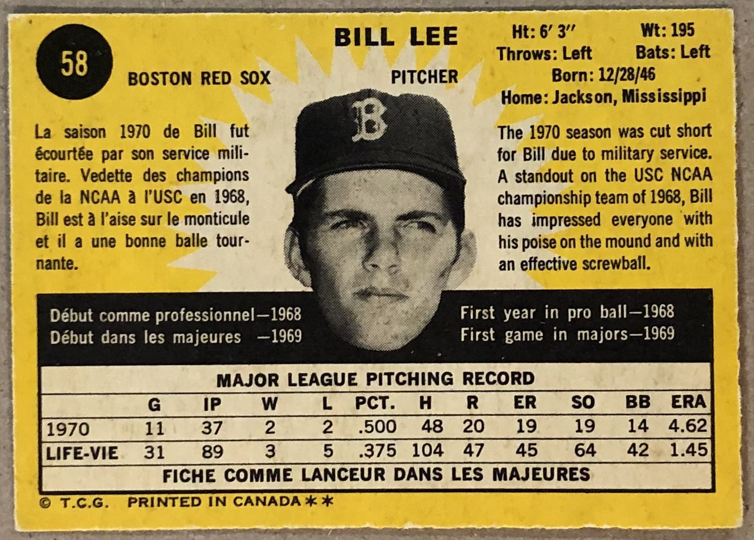 Lot 1080 1971 O-PEE-CHEE BILL LEE