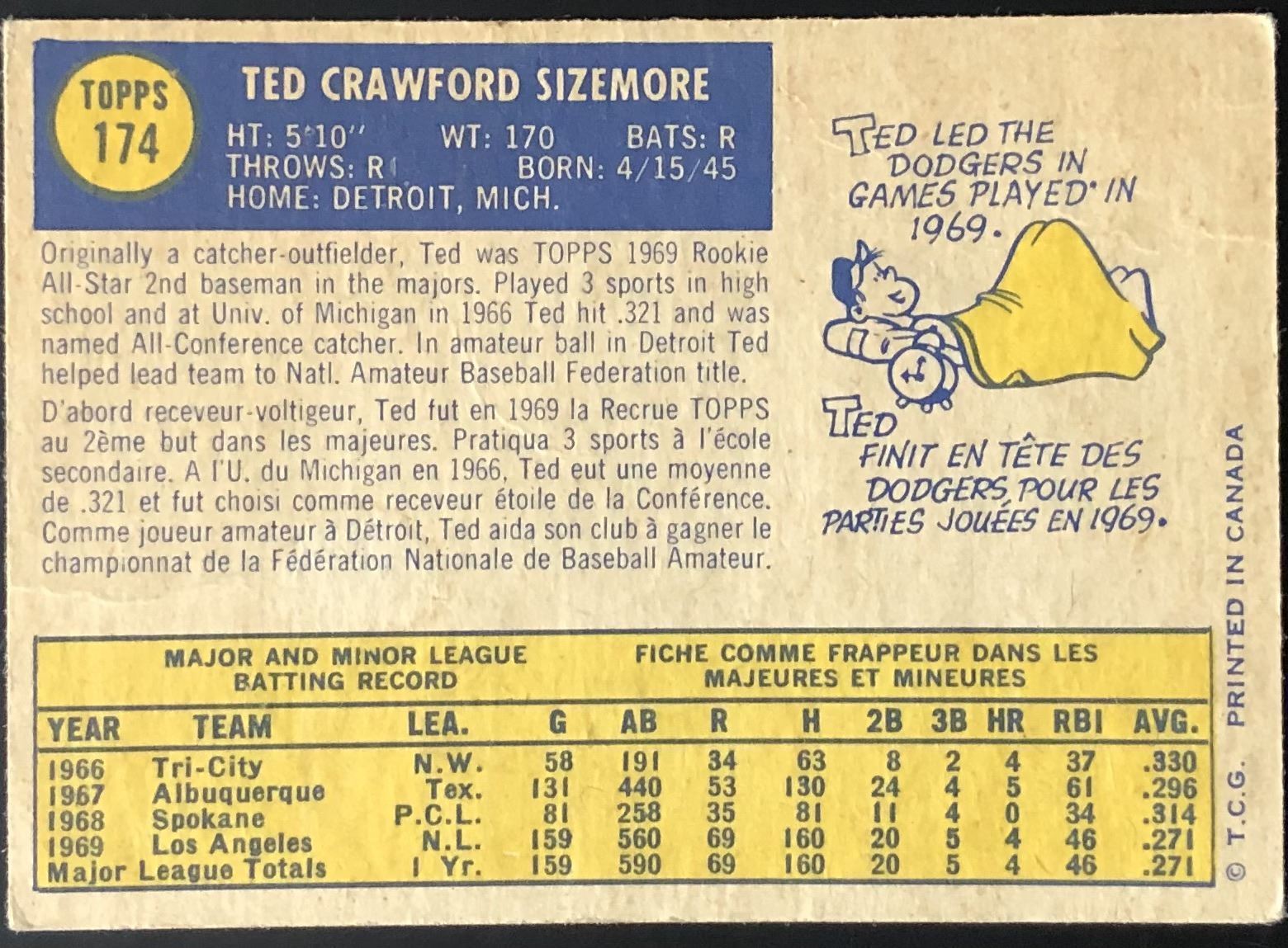 Lot 1085 1970 O-PEE-CHEE TED SIZEMORE ROOKIE CARD