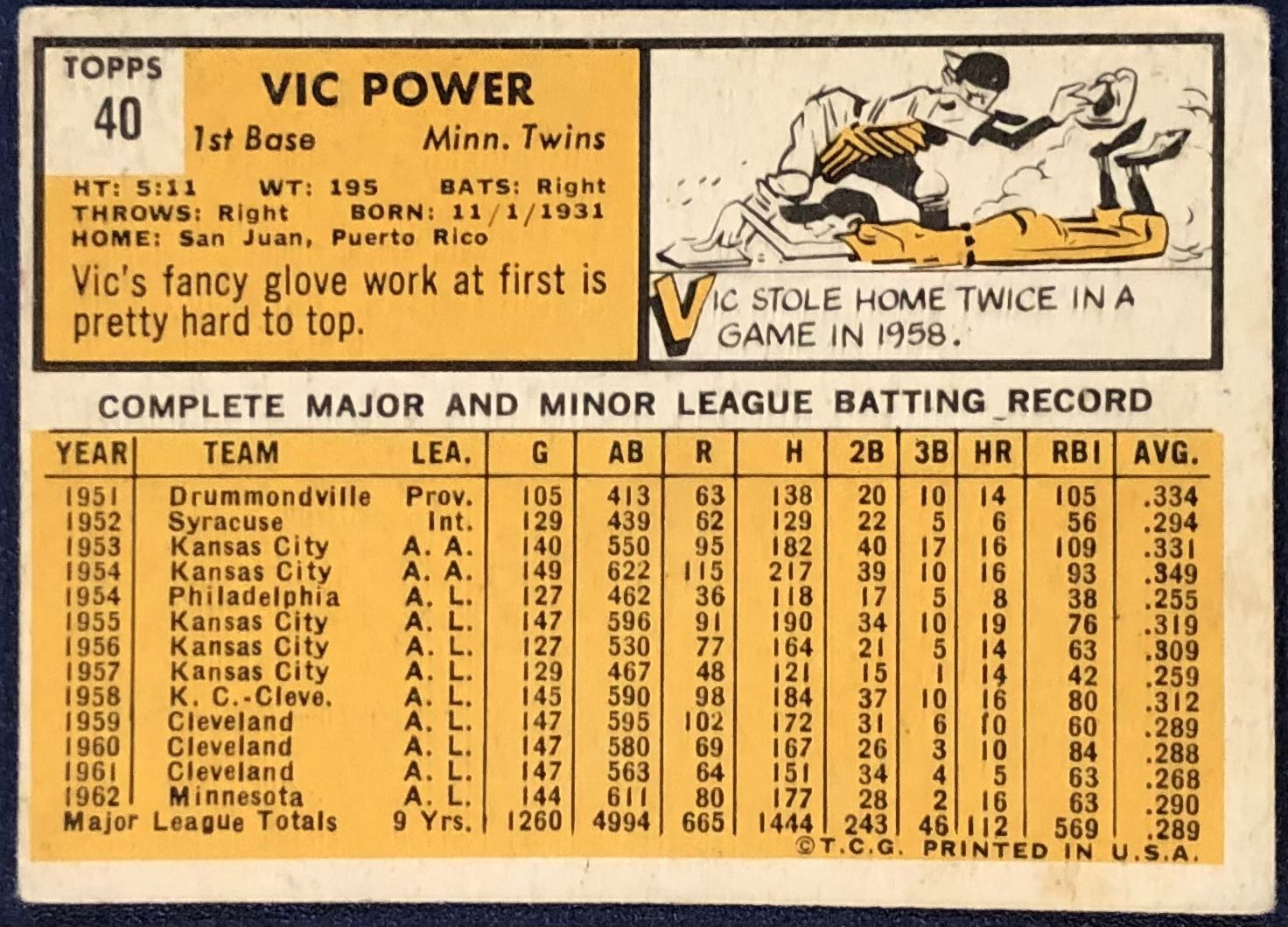 Lot 1095 1963 TOPPS VIC POWER