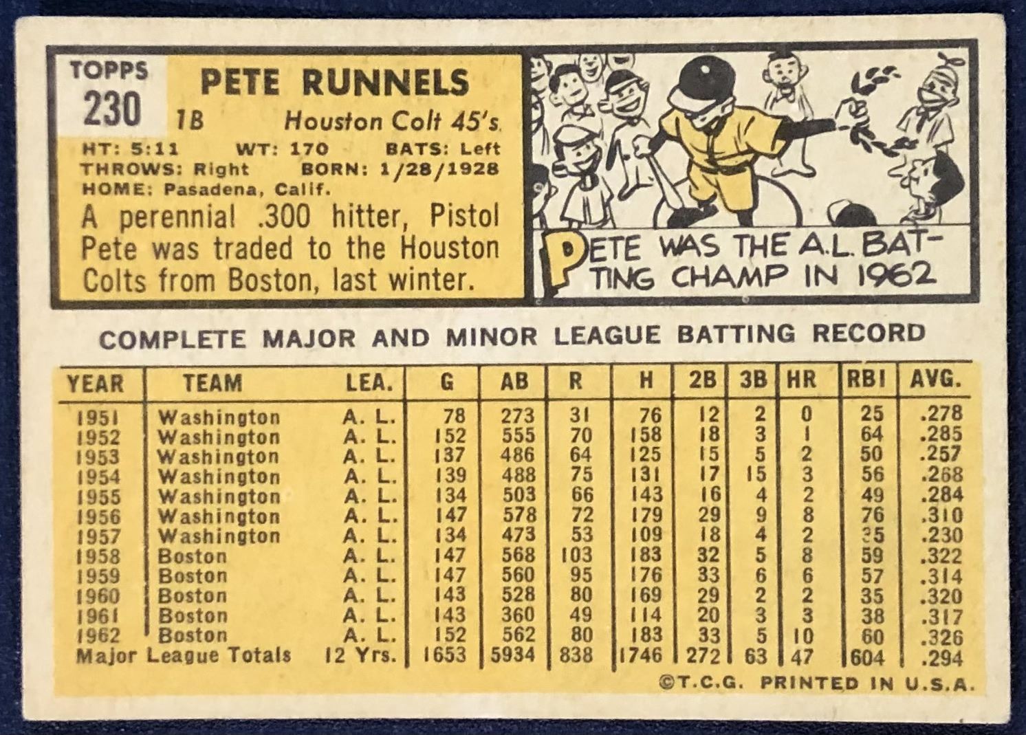 Lot 1098 1963 TOPPS PETE RUNNELS