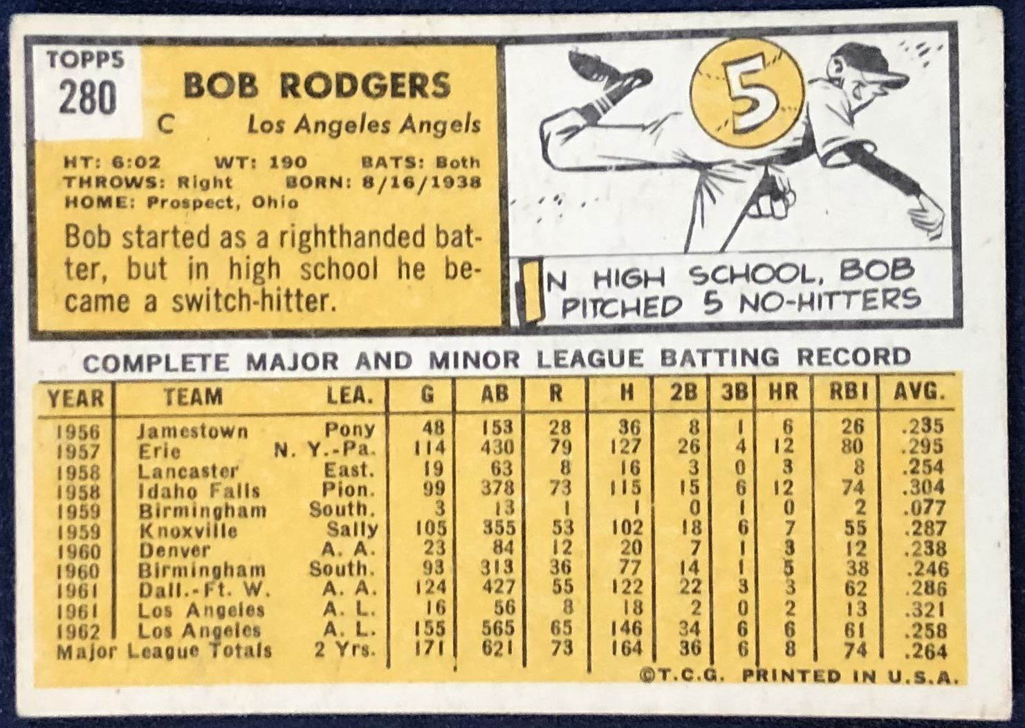 Lot 1114 1963 TOPPS BUCK RODGERS ROOKIE CARD