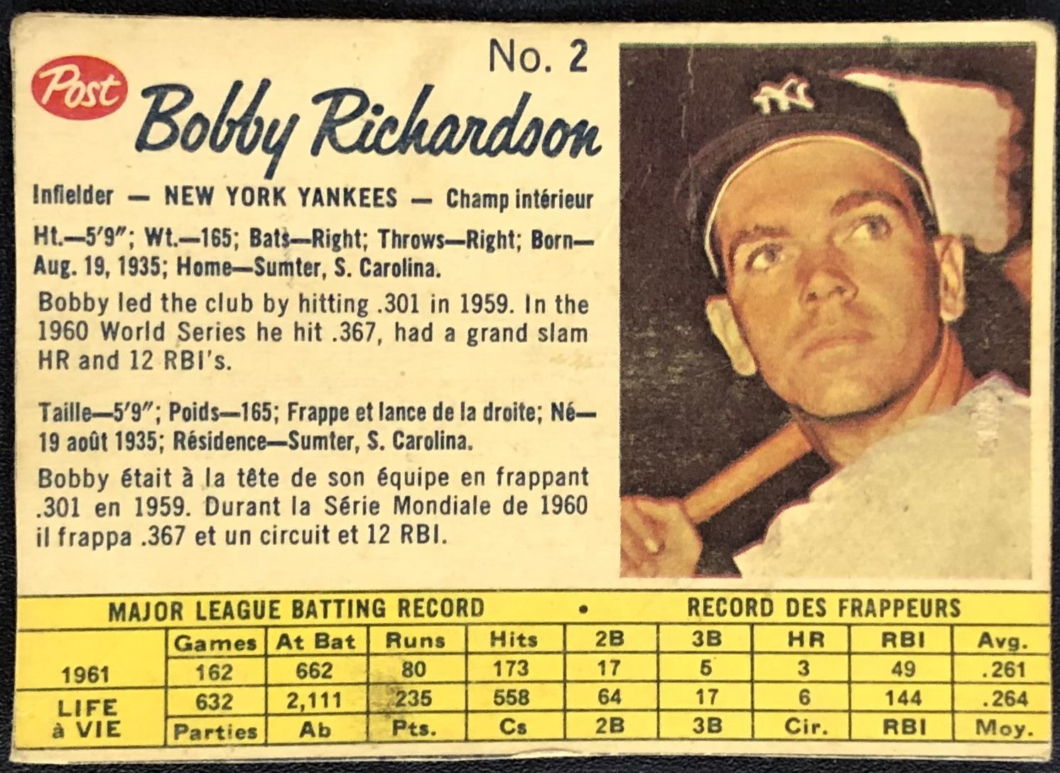 Lot 1124 1962 POST CEREAL BASEBALL BOBBY RICHARDSON
