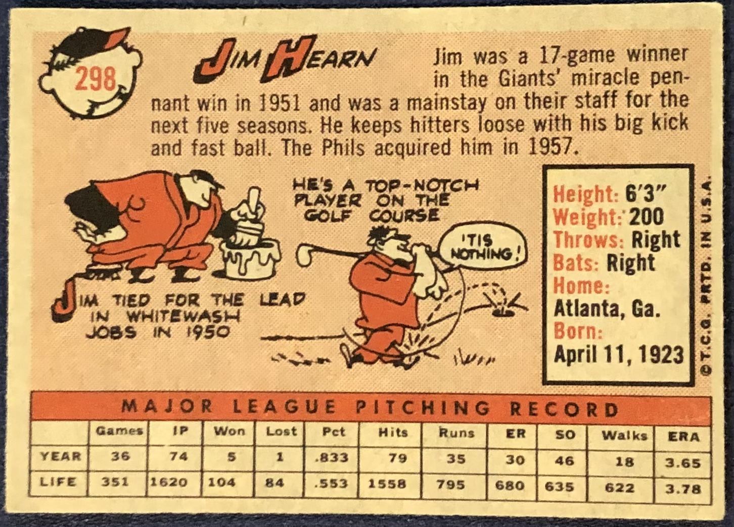 Lot 1134 1958 TOPPS JIM HEARN