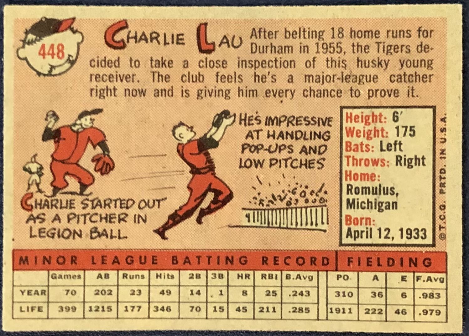 Lot 1139 1958 TOPPS CHARLIE LAU ROOKIE CARD