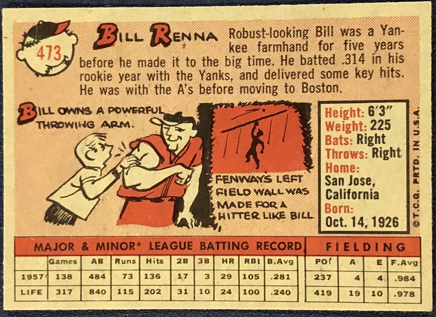 Lot 1140 1958 TOPPS BILL RENNA
