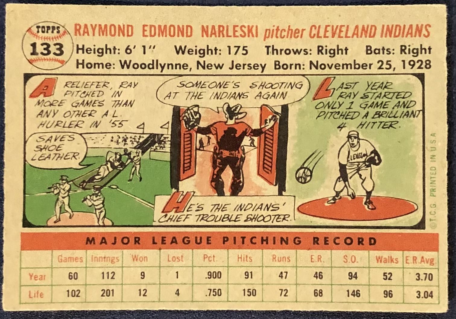 Lot 1143 1956 TOPPS GRAYBACK RAY NARLESKI