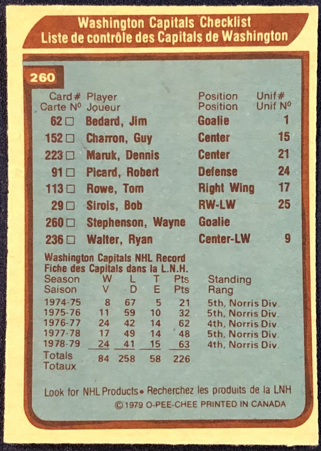 Lot 1156 1979-80 O-PEE-CHEE WASHINGTON CAPITALS