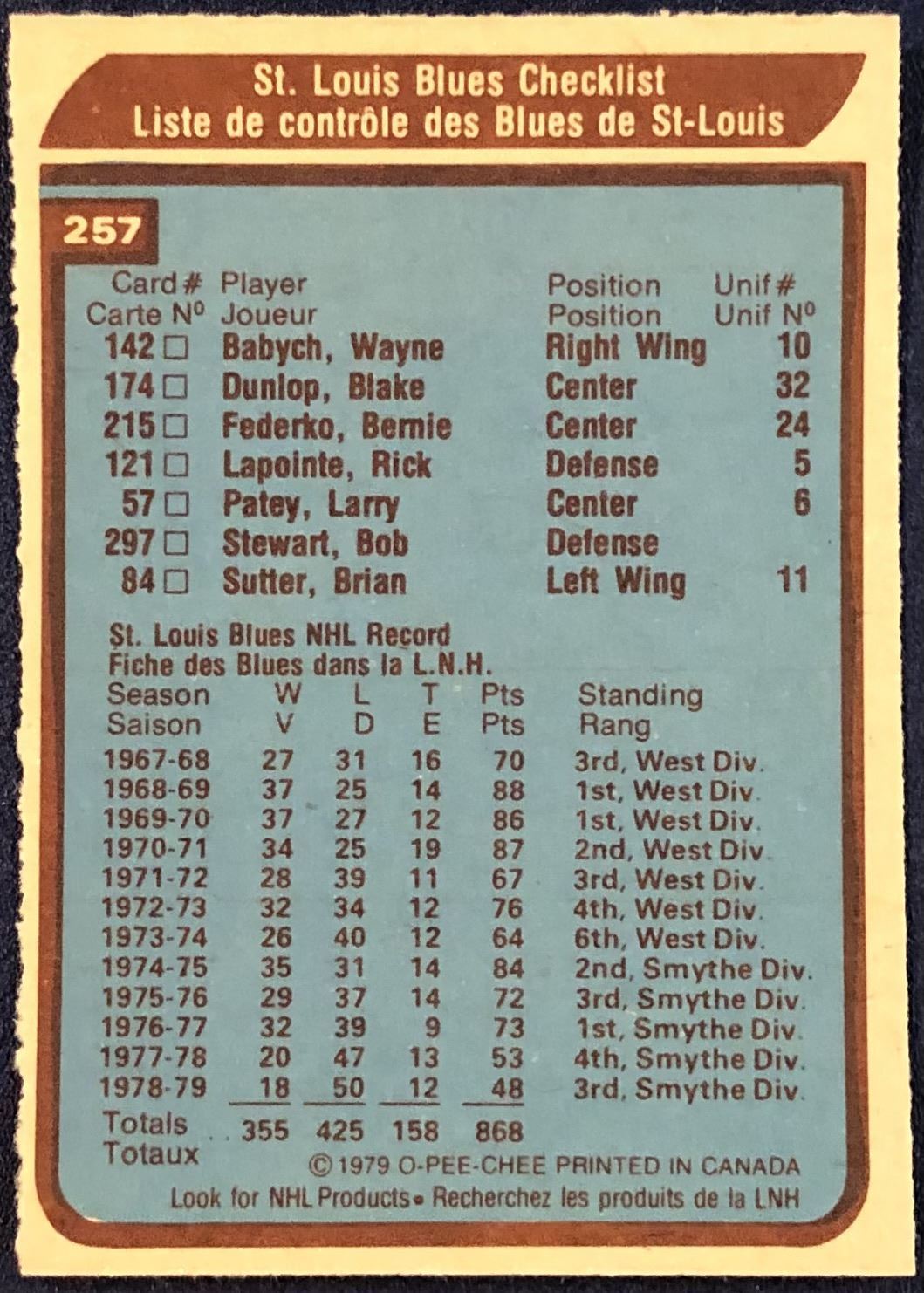 Lot 1169 1979-80 O-PEE-CHEE ST. LOUIS BLUES