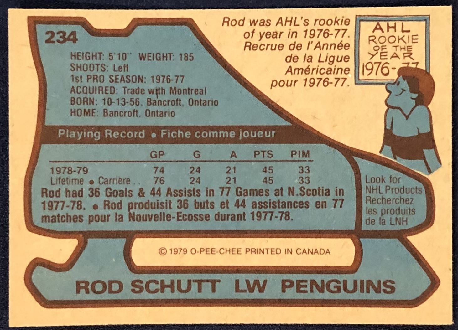 Lot 1175 1979-80 O-PEE-CHEE ROD SCHUTT ROOKIE CARD