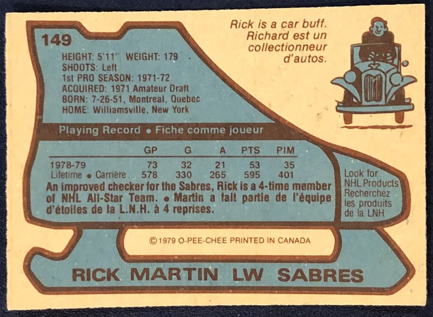 Lot 1178 1979-80 O-PEE-CHEE RICK MARTIN (HOF)