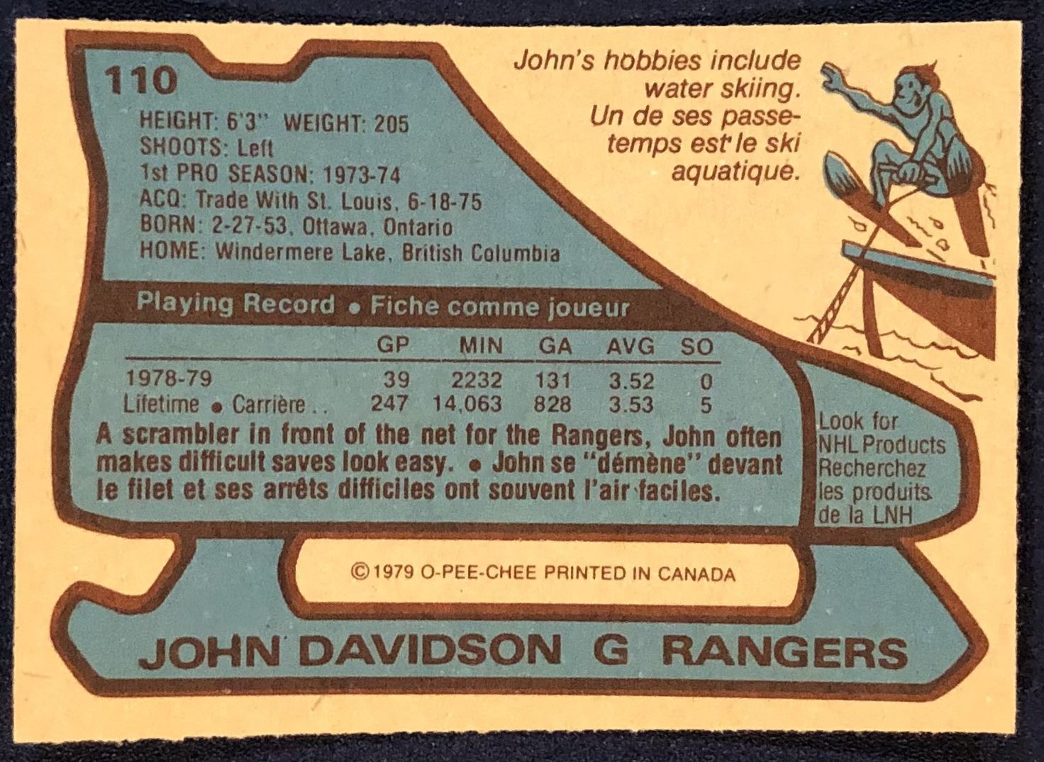 Lot 1195 1979-80 O-PEE-CHEE JOHN DAVIDSON (HOF)