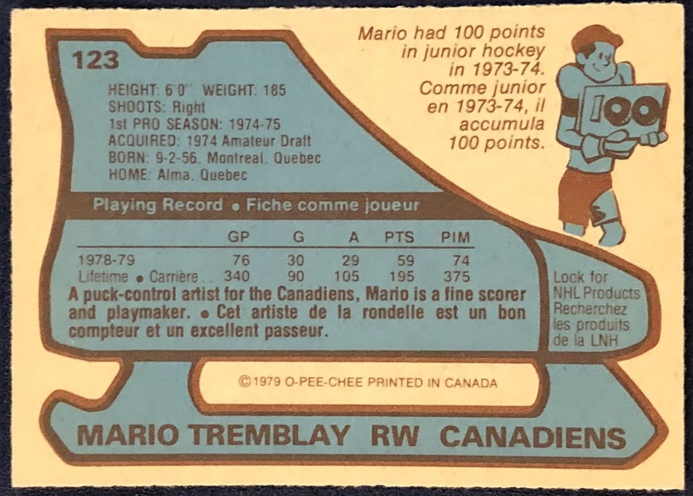 Lot 1209 1979-80 O-PEE-CHEE MARIO TREMBLAY