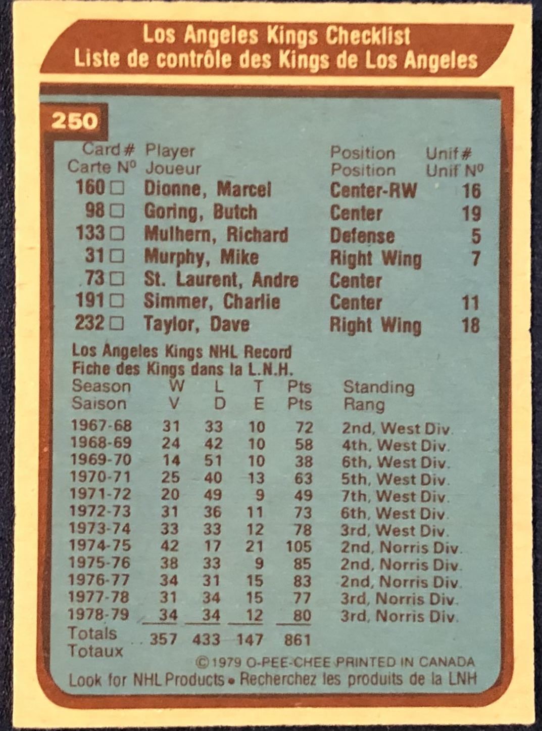 Lot 1212 1979-80 O-PEE-CHEE LOS ANGELES KINGS