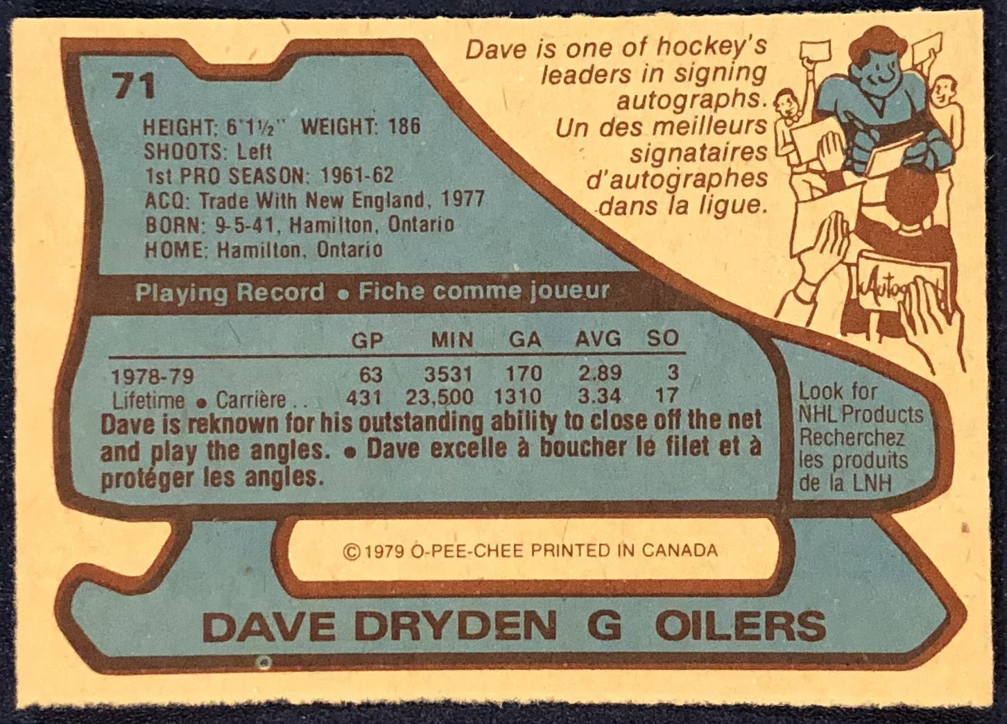 Lot 1252 1979-80 O-PEE-CHEE DAVE DRYDEN