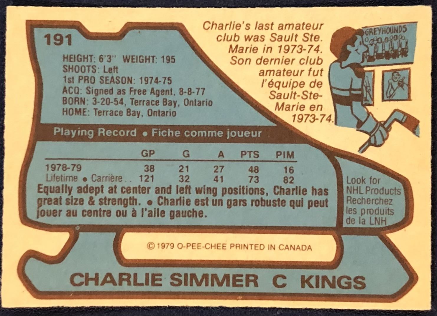 Lot 1260 1979-80 O-PEE-CHEE CHARLIE SIMMER ROOKIE CARD