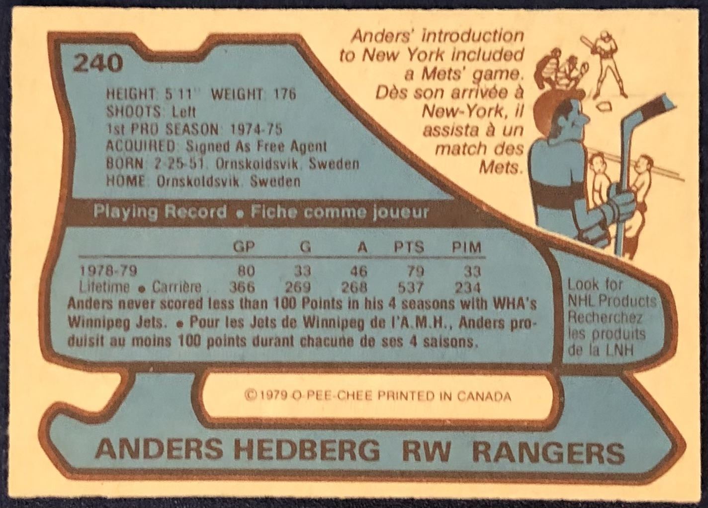 Lot 1282 1979-80 O-PEE-CHEE ANDERS HEDBERG