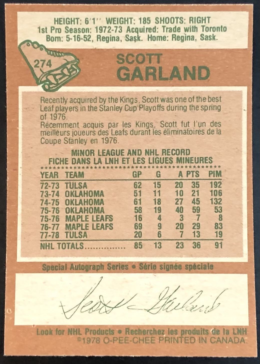 Lot 1284 1978-79 O-PEE-CHEE SCOTT GARLAND ROOKIE CARD
