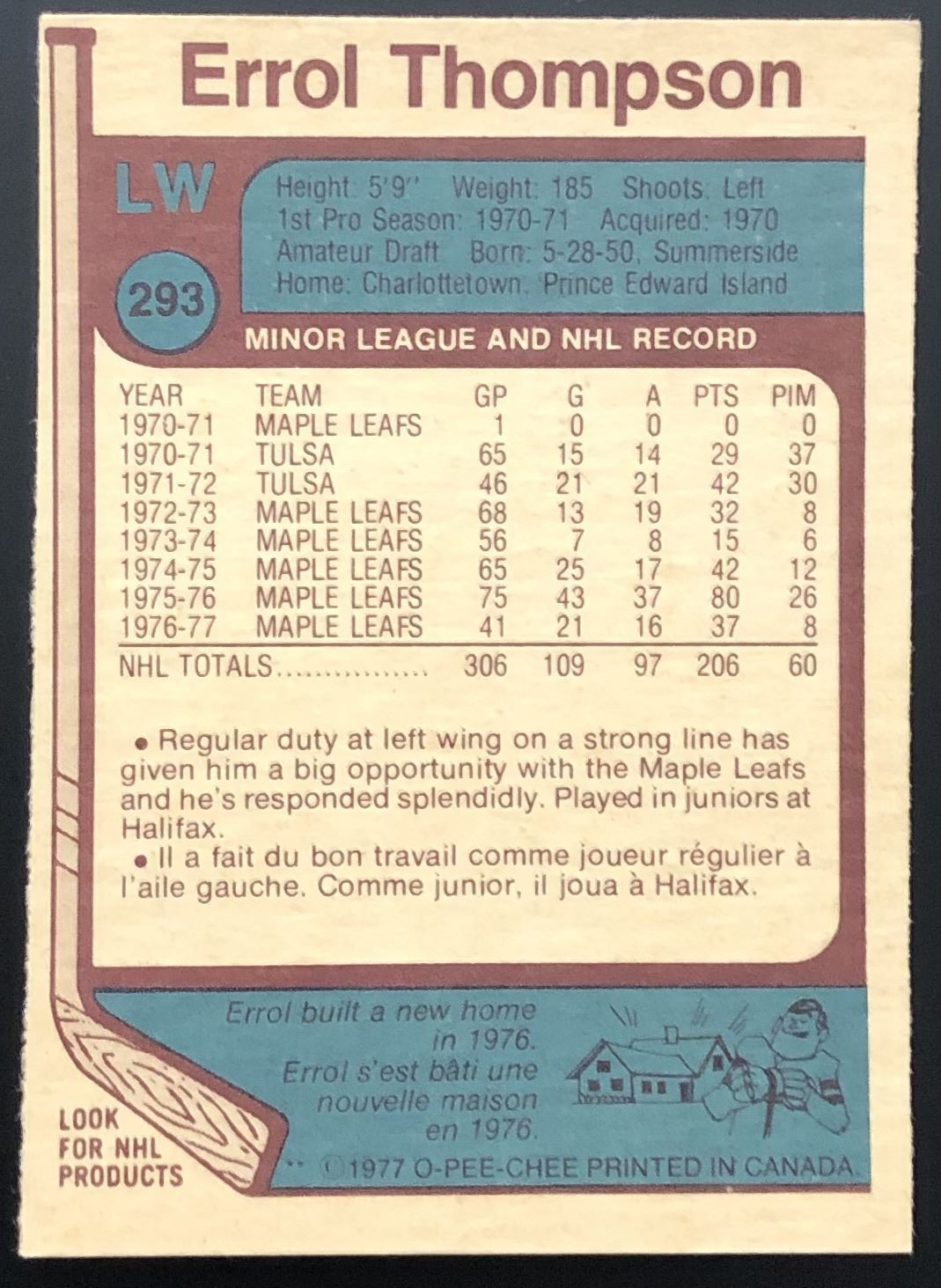 Lot 1287 1977-78 O-PEE-CHEE ERROL THOMPSON