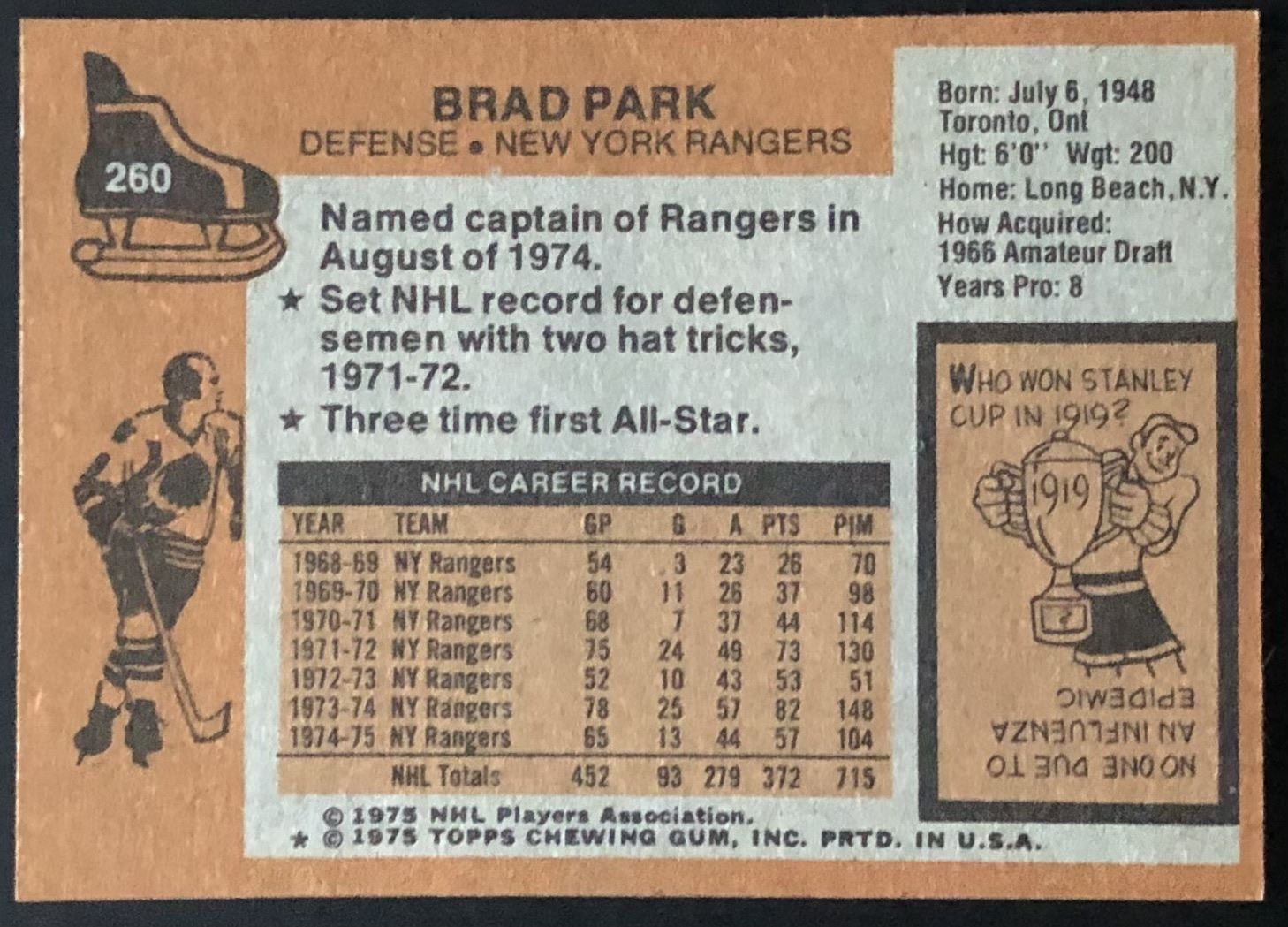 Lot 1301 1975-76 TOPPS BRAD PARK (HOF)