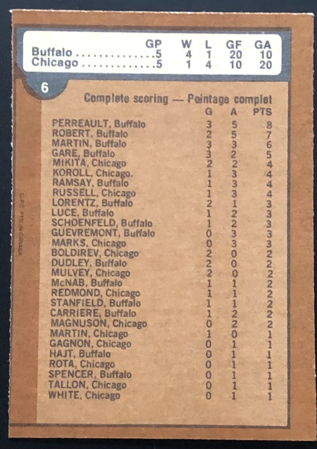 Card #6 NHL, hockey, OPC, vintage, hall of fame