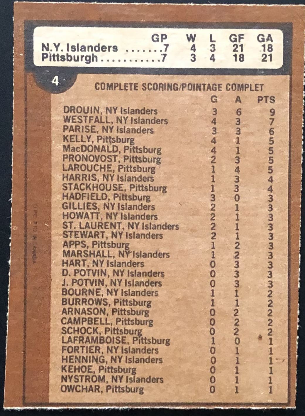 Card #4 NHL, hockey, OPC, vintage, hall of fame