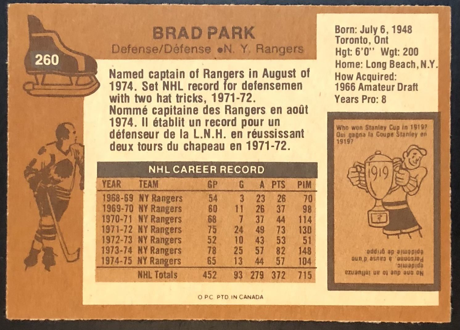 Lot 1320 1975-76 NHL O-PEE-CHEE BRAD PARK (HOF)