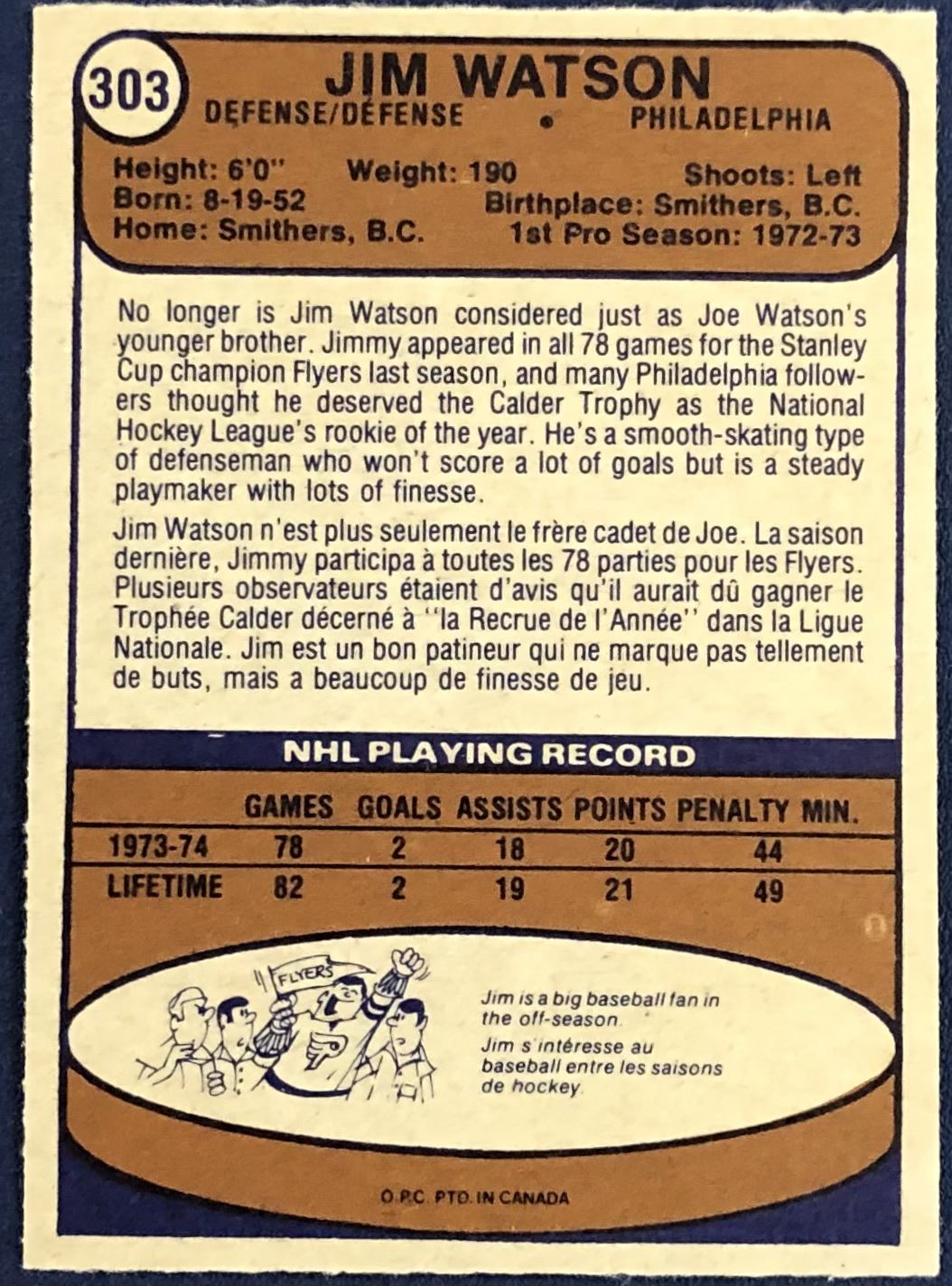 Lot 1331 1974-75 O-PEE-CHEE JIMMY WATSON ROOKIE CARD