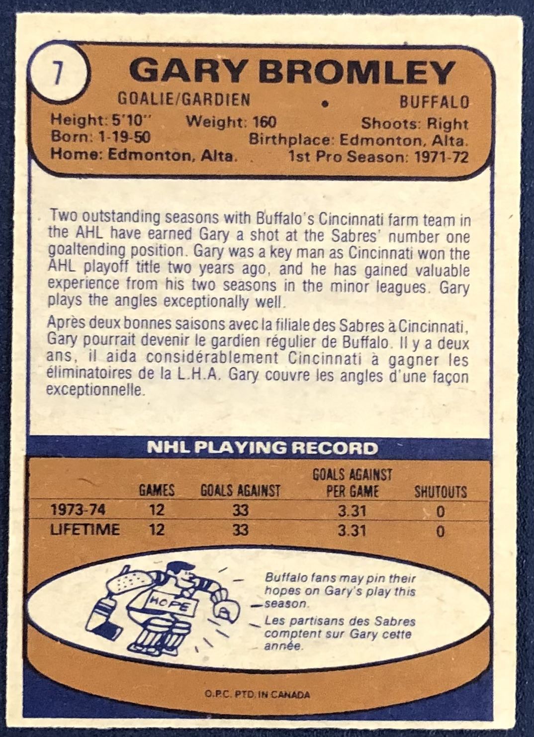 Lot 1339 1974-75 O-PEE-CHEE GARY BROMLEY ROOKIE CARD