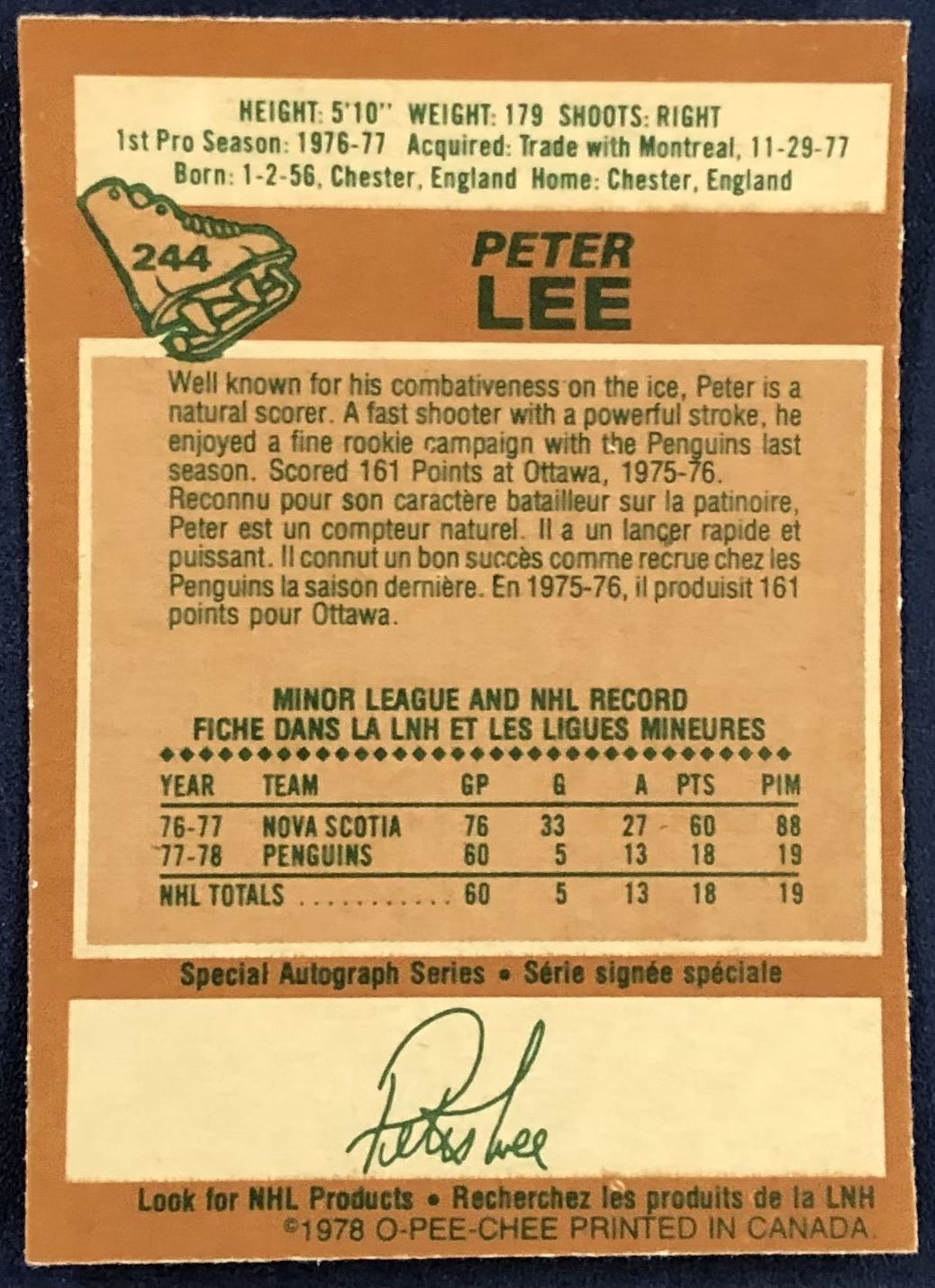 Lot 1340 1978-79 O-PEE-CHEE PETER LEE ROOKIE CARD
