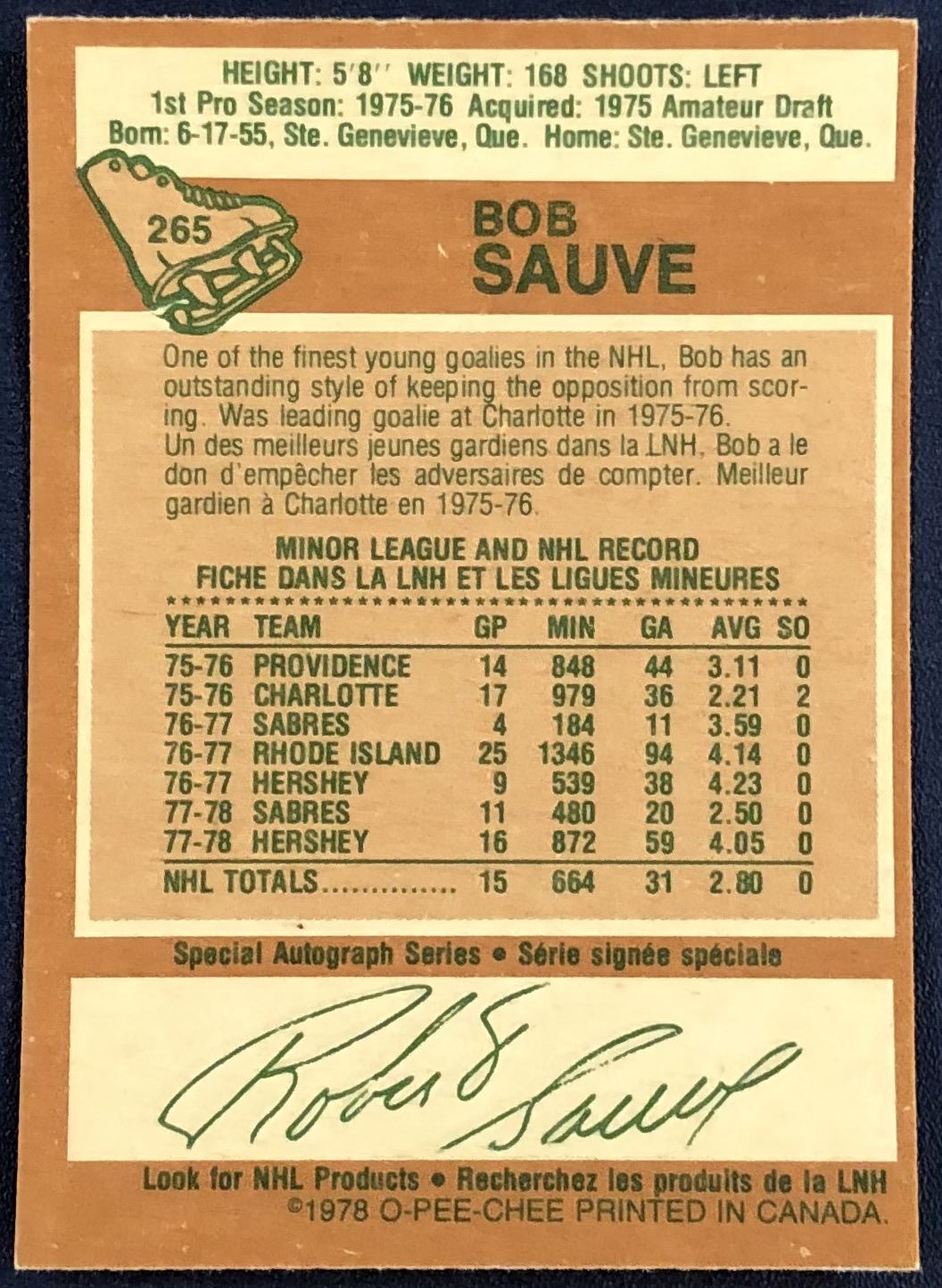 Lot 1342 1978-79 O-PEE-CHEE BOB SAUVE ROOKIE CARD
