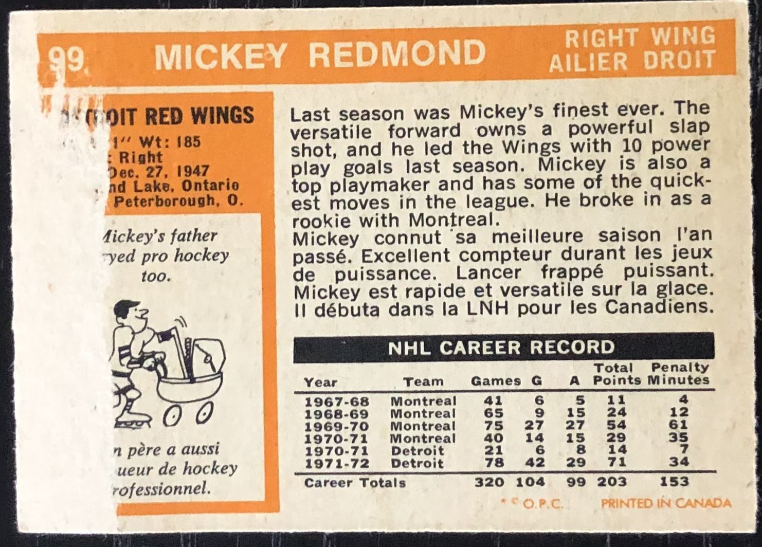 Lot 1348 1972-73 O-PEE-CHEE MICKEY REDMOND (HOF)