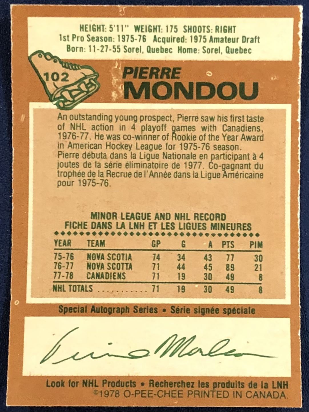 Lot 1354 1978-79 O-PEE-CHEE PIERRE MONDOU ROOKIE CARD