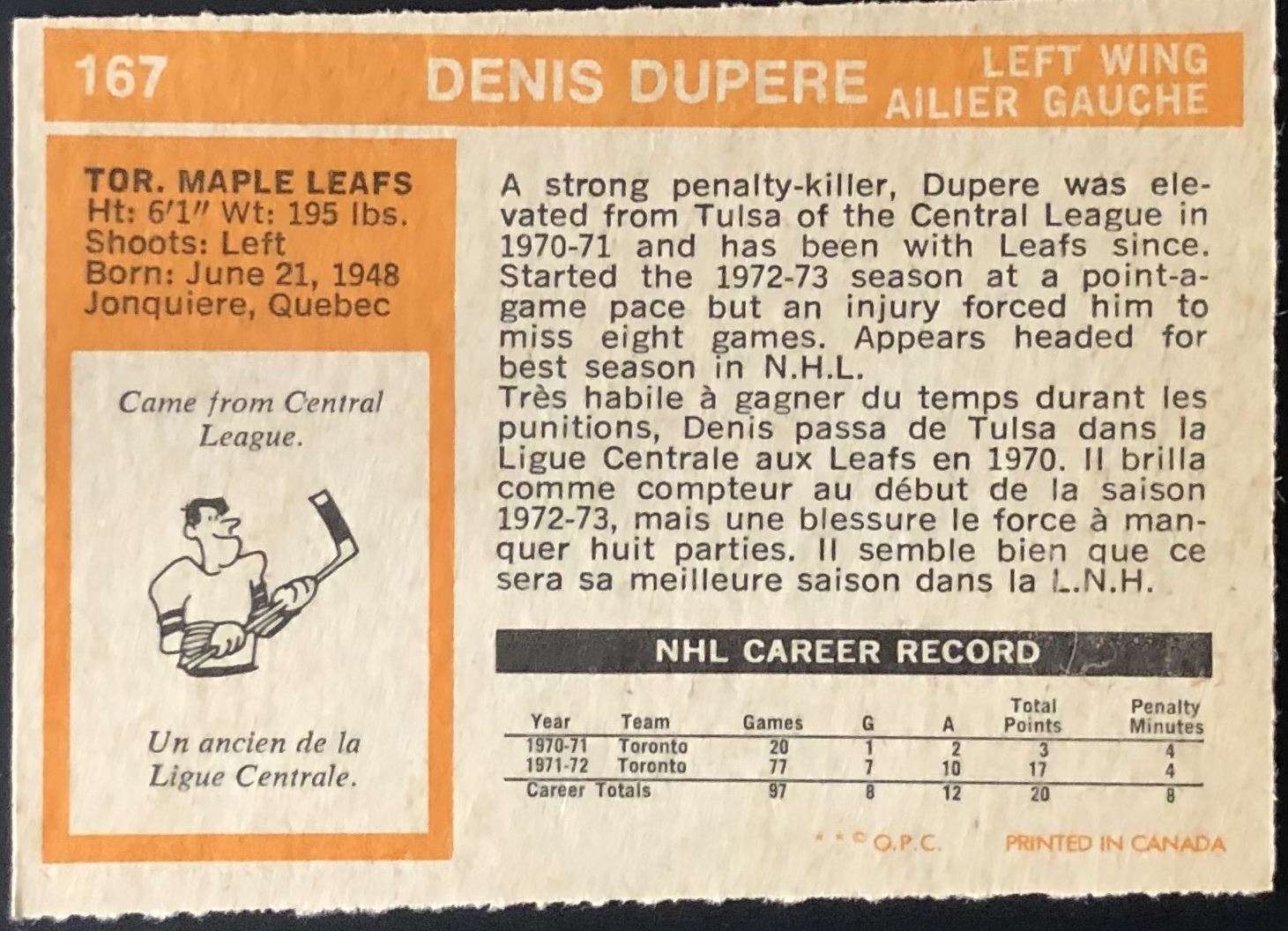 Lot 1371 1972-73 O-PEE-CHEE DENIS DUPERE ROOKIE CARD