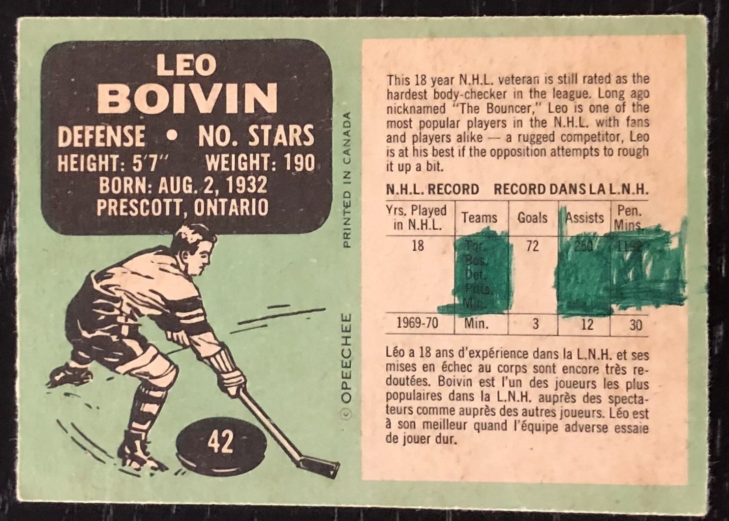 Lot 1379 1970-71 O-PEE-CHEE LEO BOIVIN