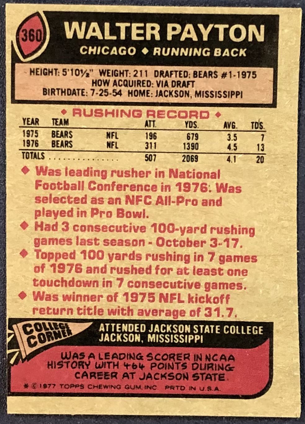 Lot 1410 1977 TOPPS NFL FOOTBALL WALTER PAYTON (HOF)