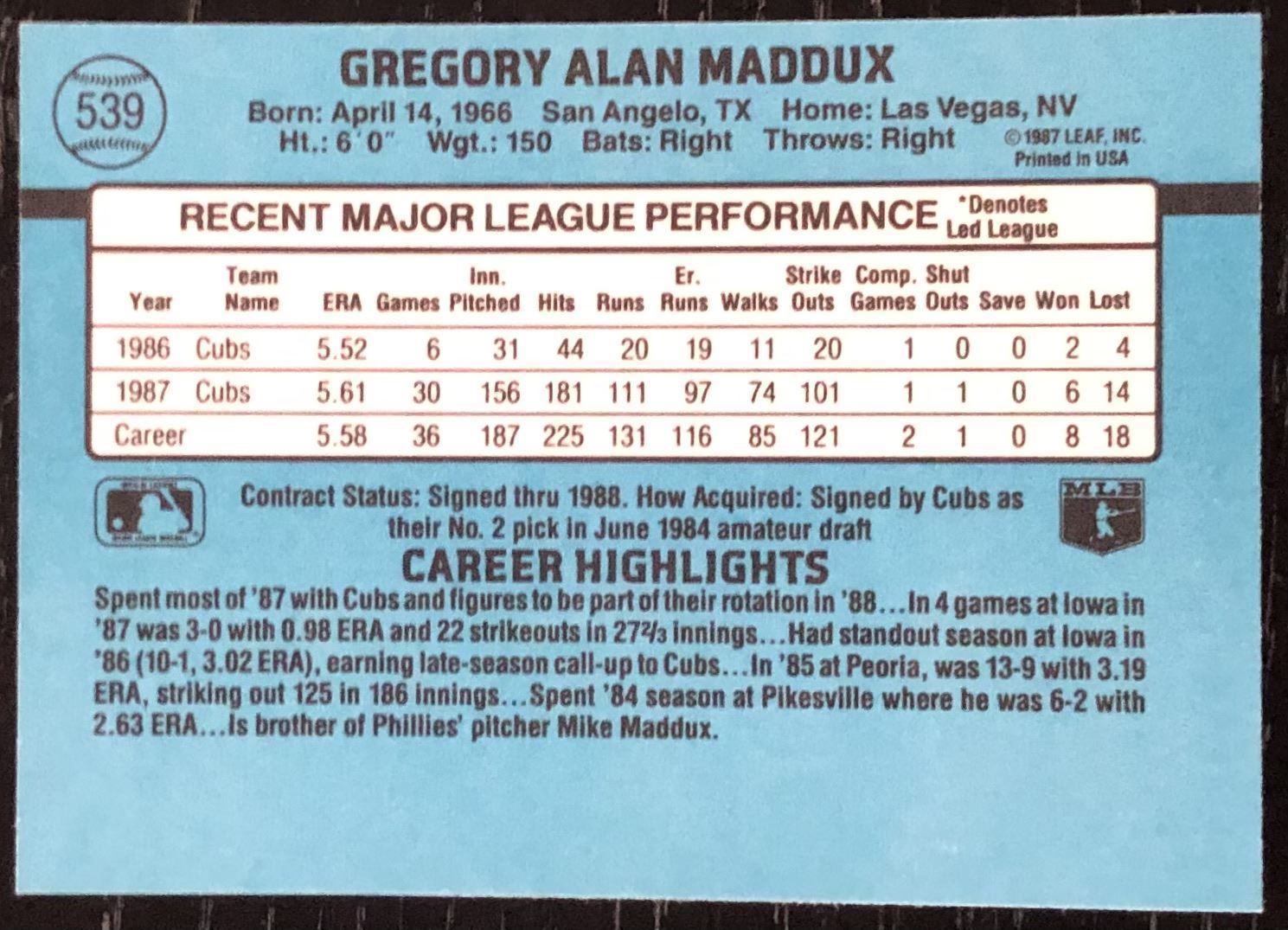 Lot 1433 1988 DONRUSS GREG MADDUX (HOF) ROOKIE CARD