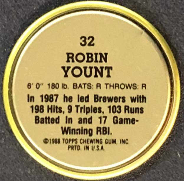 Lot 1434 1988 TOPPS BASEBALL COIN - ROBIN YOUNT (HOF)