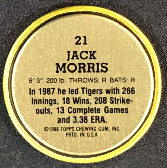 Lot 1435 1988 TOPPS BASEBALL COIN - JACK MORRIS (HOF)