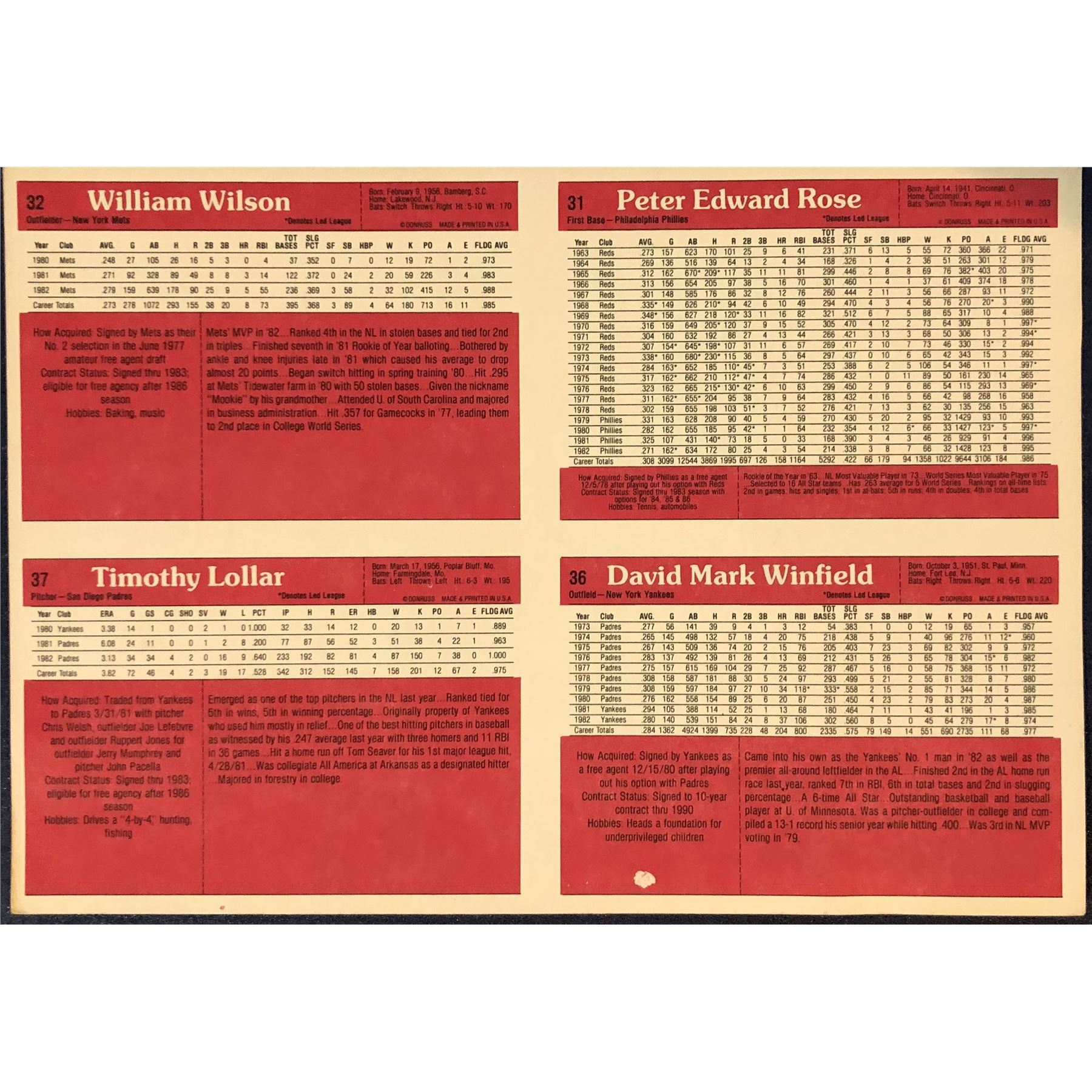 Lot 1436 1983 DONRUSS MLB POSTCARDS FOUR UP PANEL - PETE ROSE / DAVE WINFIELD (HOF)