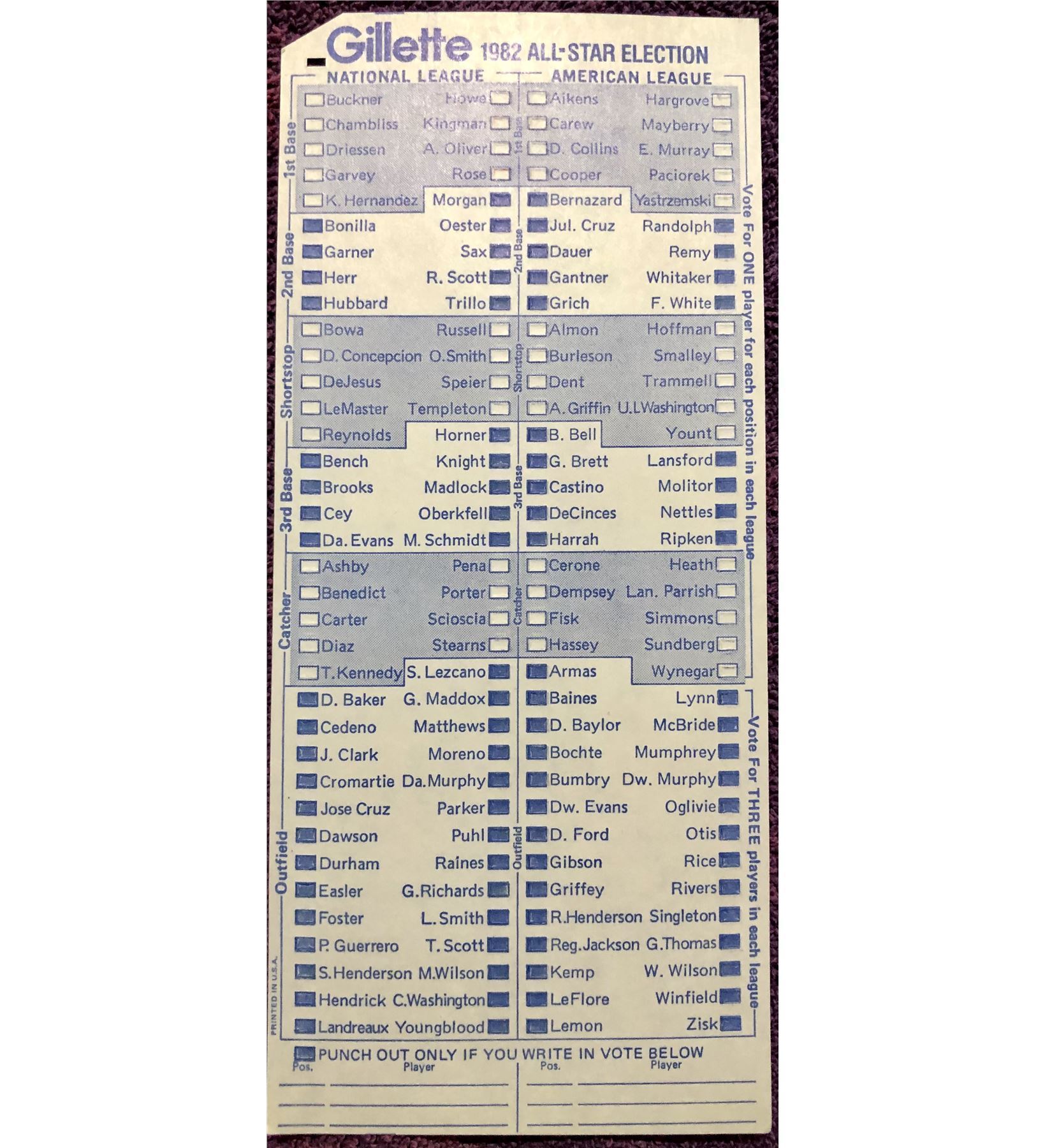 1982 MAJOR LEAGUE BASEBALL ALL STAR BALLOT