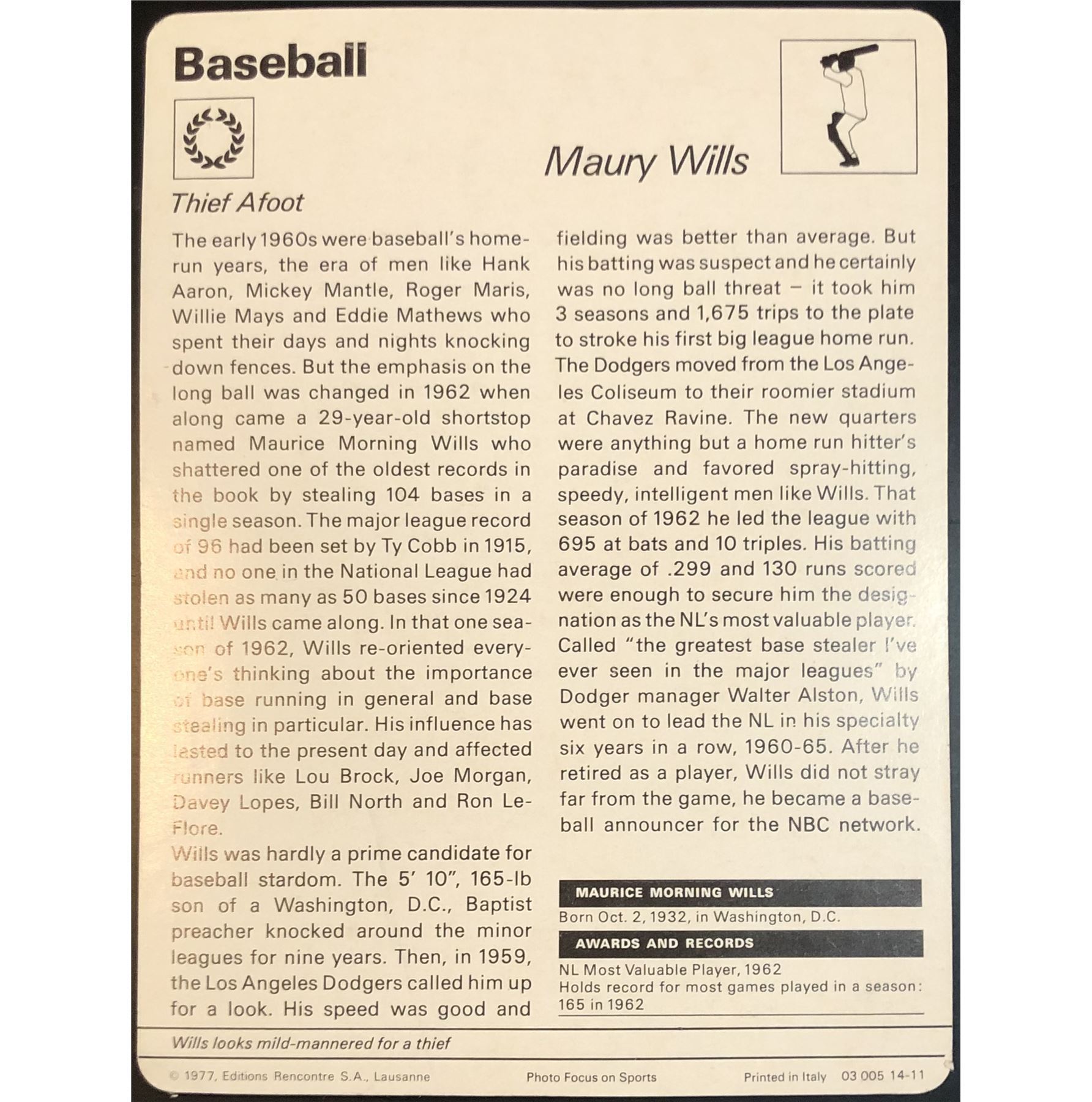 Lot 1442 1977 SPORTSCASTER MAURY WILLS